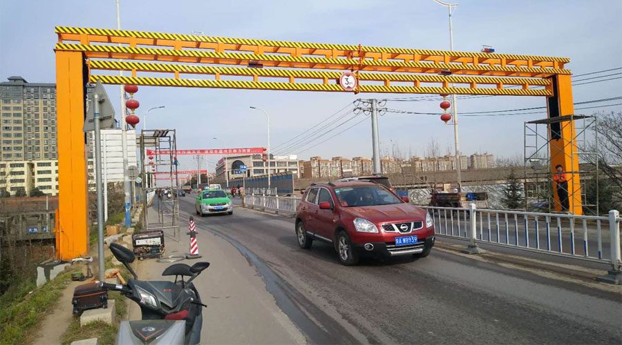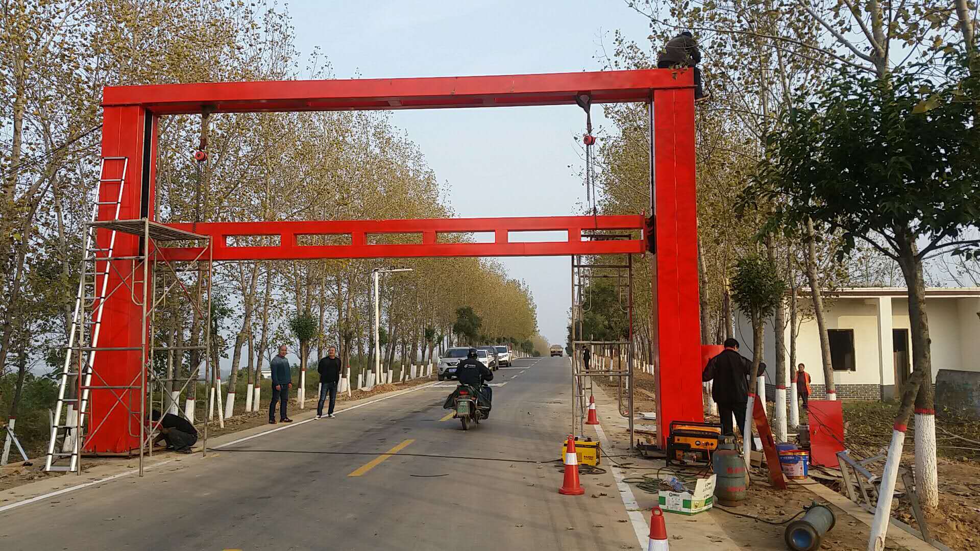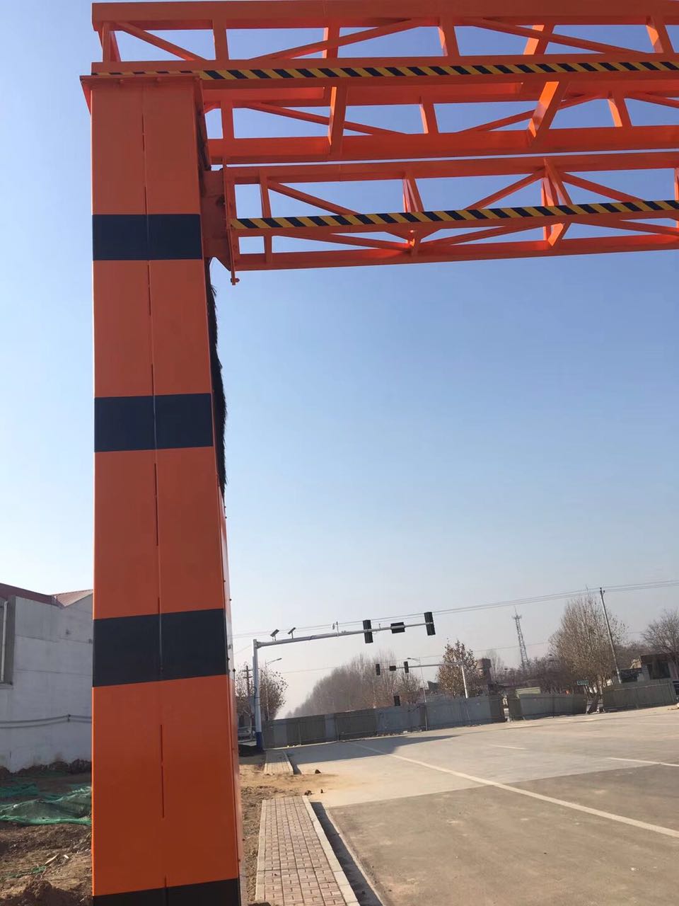 智能电动升降式限高架:公路龙门架、标志牌龙门架、简易龙门架、led显示屏龙门架,限宽龙门架,限高龙门架的安装指南:1.安装前确认是否通车,无通车时直接进场安装,通车时与甲方确认进场许可,封路时间及时段,以避开上下班高峰期,一般选择非节假日,凌晨6点安装为宜。进场后派员工一人先把基础墩清扫出来,把地脚螺栓包裹的丝牙清洁干净,用黄油把丝牙和螺母润化,把定位法兰处上的泥沙等清洁干净(注意:打扫的面积至少大于底法兰板的规格为宜),在确认安装地标无误时,依次把龙门架的部件从车上吊放在地上,请不要叠放,以平放组装方便为原则,派员工一名把显示屏龙门架的横臂与立柱连接高强螺栓按数量规格拿出来,还有配置的相关扳手等工具,合部件从车上吊下来后,首先把龙门架横臂放倒一侧(即正面安装LED显示屏一面朝上)然后把“左立柱”(记住:龙门架在基础混凝土浇筑时一般会有偏差,比如平行度和标高等。因此龙门架在制作前就要把立柱标记左立柱和右立柱,这样在运输和安装时才方便配单和装下货等)与横臂的左侧法兰连接起来,螺栓不要拧得太紧要有一定的松动,接下来再把“右立柱”连接固起来,这时把事先准备好的5吨至10吨相对量的钢丝绳和吊带准备好,穿过横臂的中间处,注意不要放得太近,吊车的吊钩与龙门架之间距离至少有3米以上为宜(这便于在高空作业时,吊车司机操作方便,视觉更好)再接下来吊车慢慢升起把整座公路龙门架吊起来,一般离地面500mm以内为宜,至到基础墩处时再提高即可,这中间安装人员用扳手拧住底加强筋处,让其不乱摆动,注意整个安装过程中需有一名安全指挥员,且每人配一个对讲机(肩负式,非手持式,这样利于作业),等标志牌龙门架底法兰全部与基础地脚螺栓笼对位后,迅速拧紧底法兰螺螺栓,这过程中吊车不能动直接吊放在原位,另一组安装公司用事先准备好的梯(7米左右即可)攀登到横臂处时拧紧横臂与立柱的法兰,注意一定要加双螺母,加弹簧垫,手工制作平垫,螺栓头在上部,全部检验无误后,上横臂把吊绳取下来,吊车复位,卫生清场,封路标识设备等撤离等!